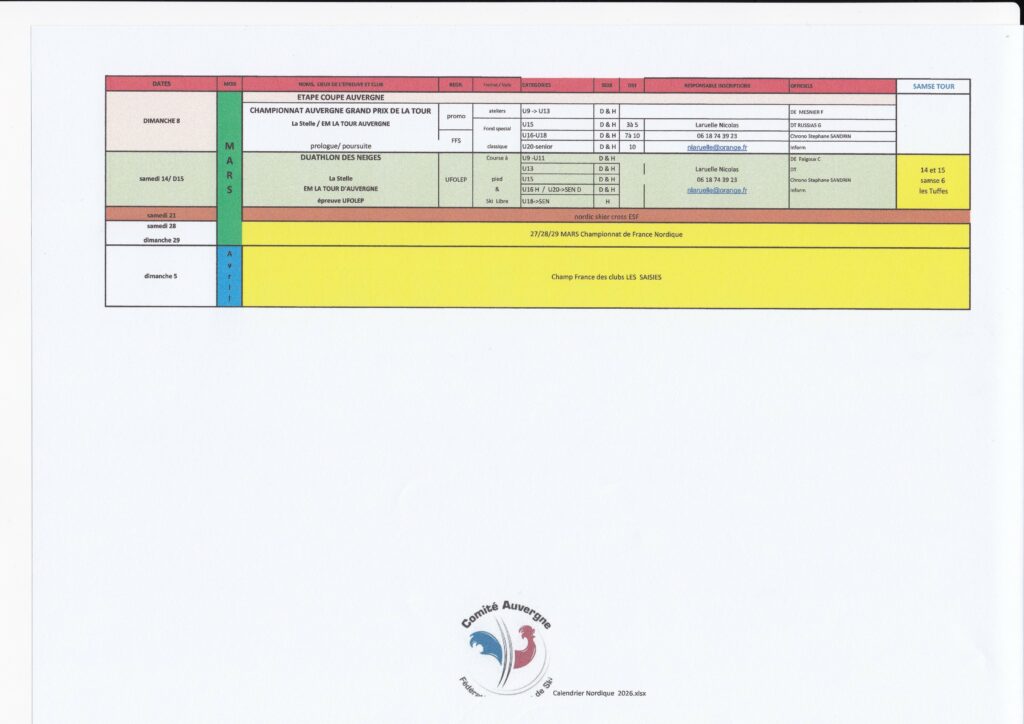 Pour plus d’information : Résultats Comité d’Auvergne Résultats FFS